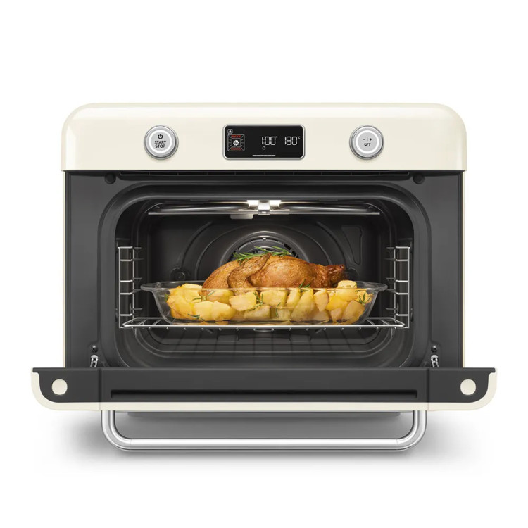 فر و هواپز اسمگ رنگ کرم مدل COF01 بهعنوان یک دستگاه چندمنظوره، قادر است انواع غذاها را با استفاده از بخار، هوا یا حرارت معمولی طبخ کند، که این ویژگی آن را به یک گزینه مناسب برای انواع نیازهای آشپزی در خانه تبدیل کرده است.